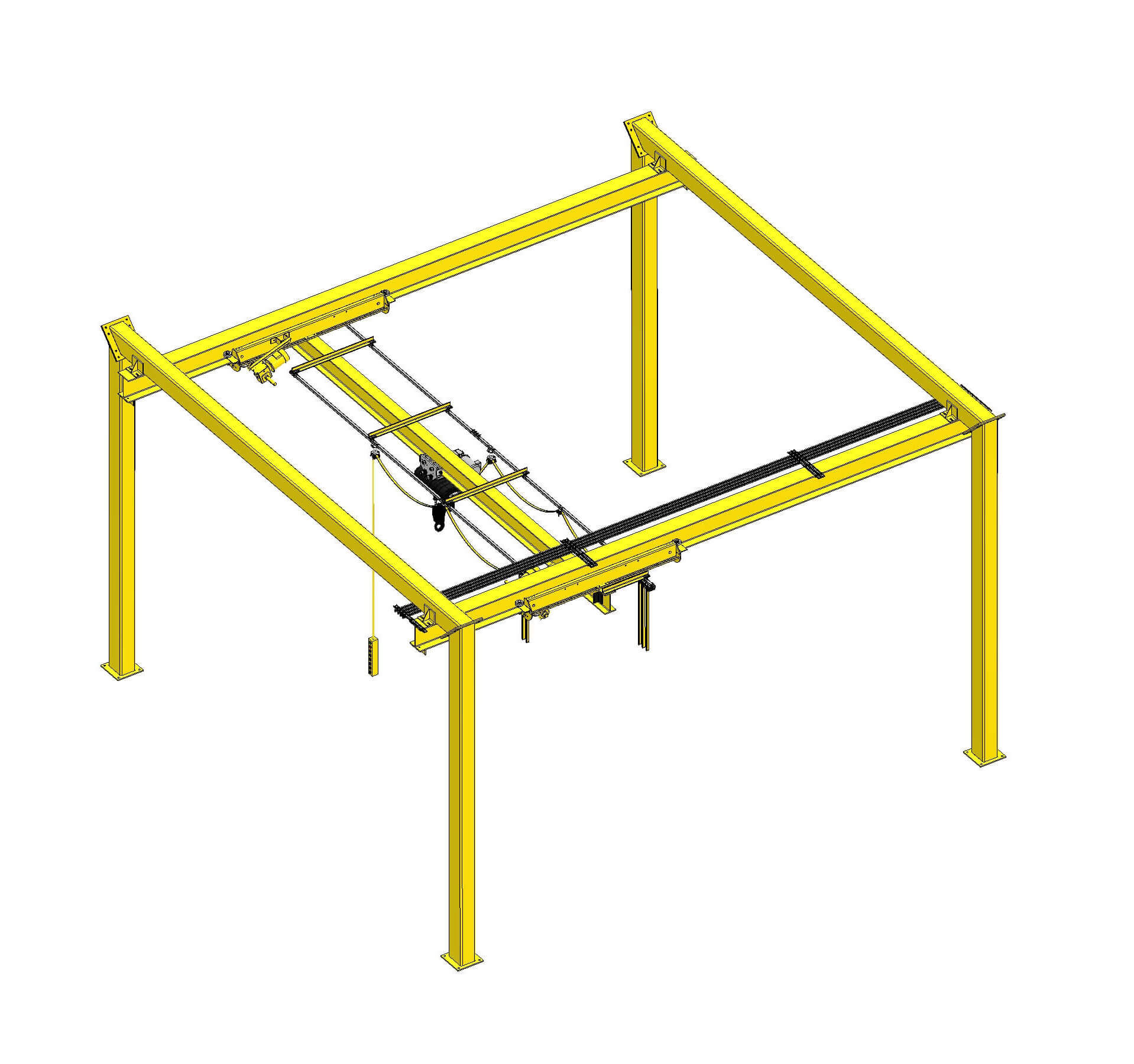 You don’t have to install your crane runway system to a fixed facility or structure. Instead you can have an independent system and be free to relocate, expand the system or change production layouts as new requirements and opportunities arrive. CraneVeyor Free Standing crane systems are available from ¼ to 40 tons capacity in various arrangements. Some Free Standing advantages are: