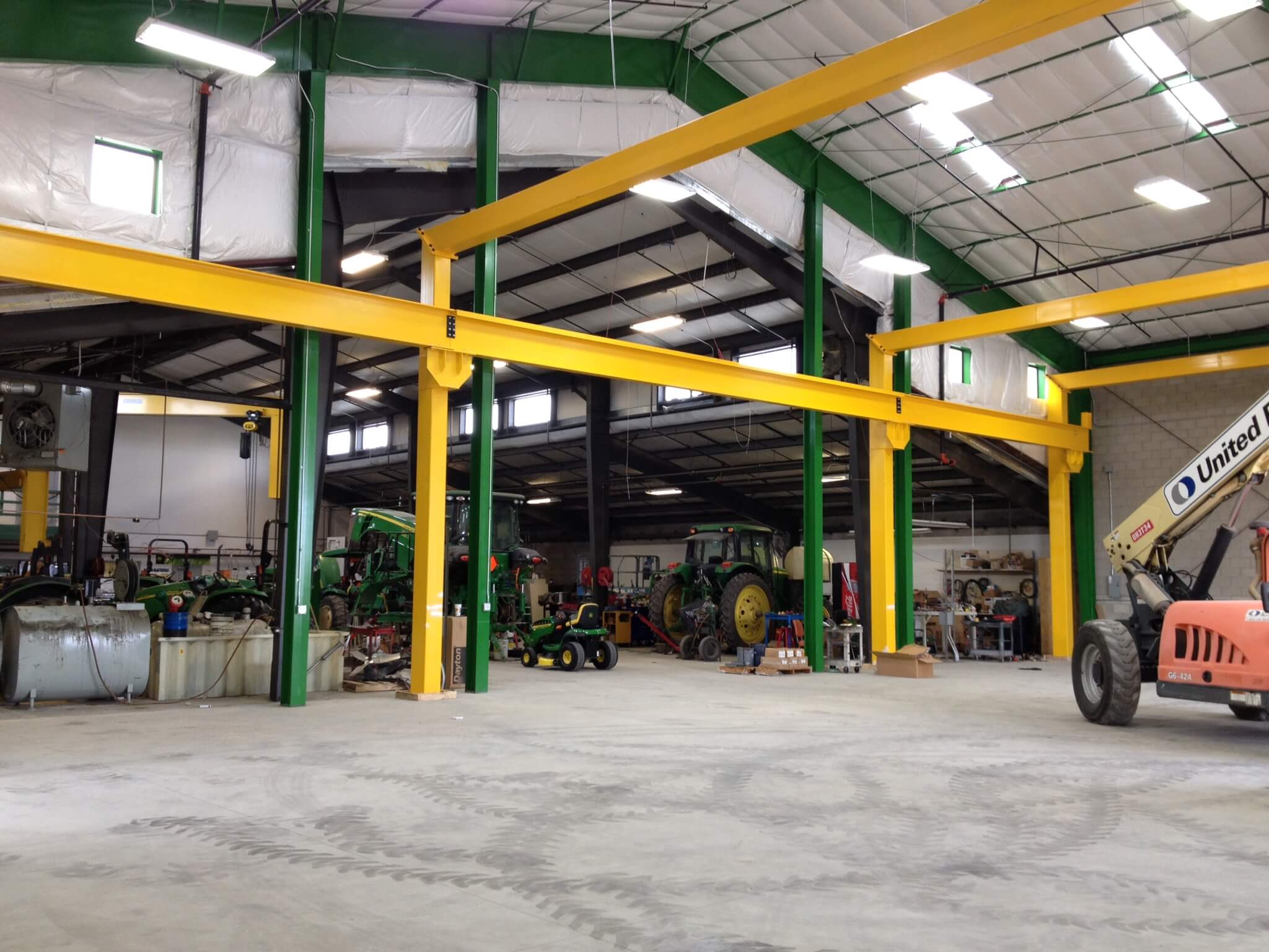 The free-standing structure is designed and manufactured utilizing formed structural steel members. The unique frame design eliminates the need for A-frame legs, X-bracing or tie-offs to the building. There are no crane loads imposed into the building structure. Less of your valuable production space is required for the efficient TransLifter System than other systems.