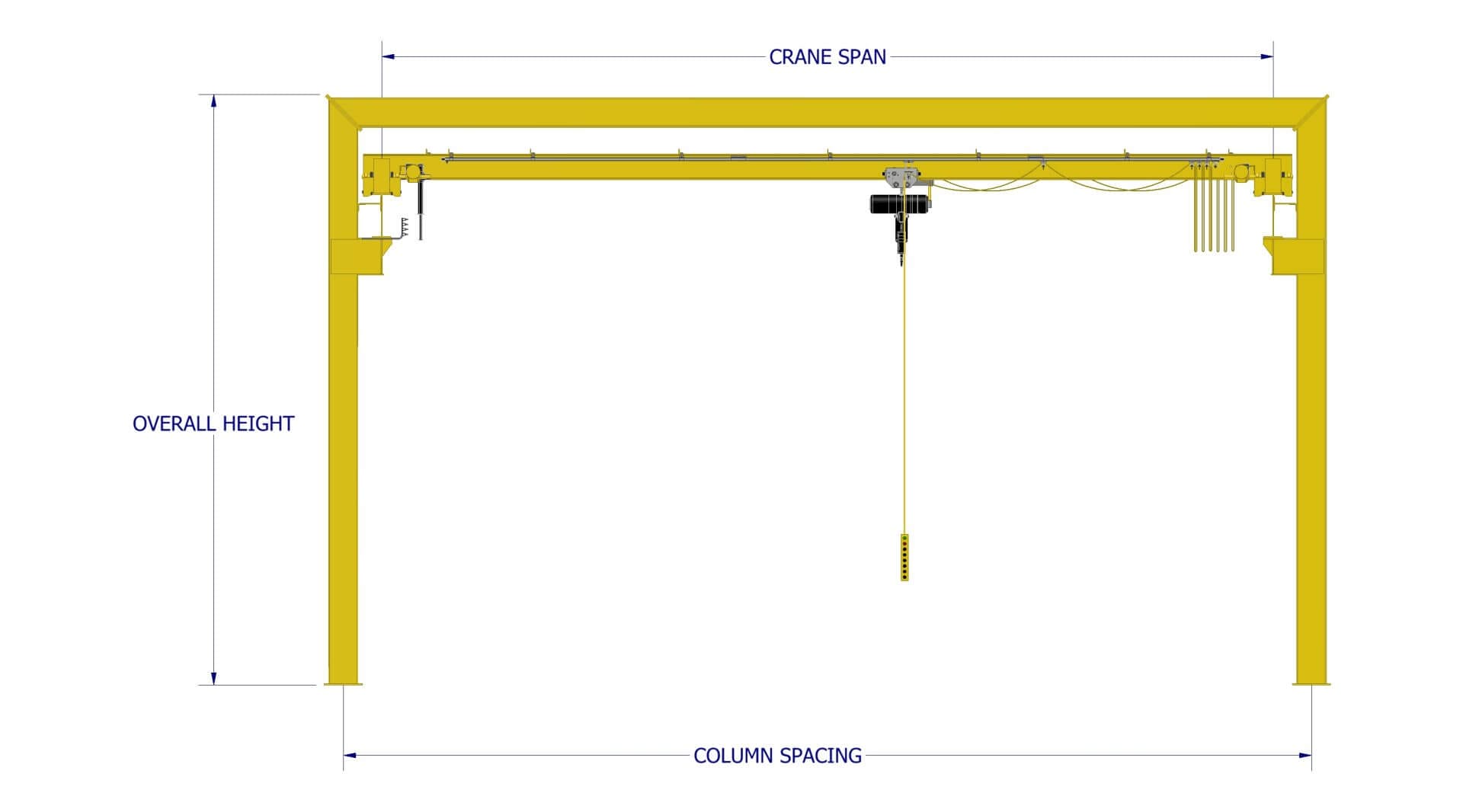 Model NumberCrane TypeCapacityColumn CentersRunway LengthNumber Of BaysMax Bay SpacingOverall HeightWeightPrice